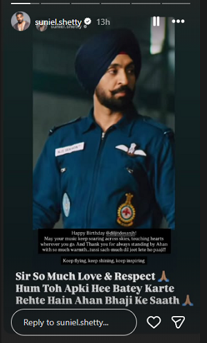 The post received even more love when Suniel Shetty, Ahan’s father and a veteran actor, reacted to it. Suniel Shetty, who was an important part of the original ‘Border’ film, praised Diljit for supporting Ahan. He wrote a heartfelt message wishing Diljit continued success and said that his music and personality truly win hearts. Suniel also wished him a bright future filled with inspiration and positivity.